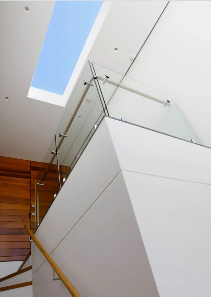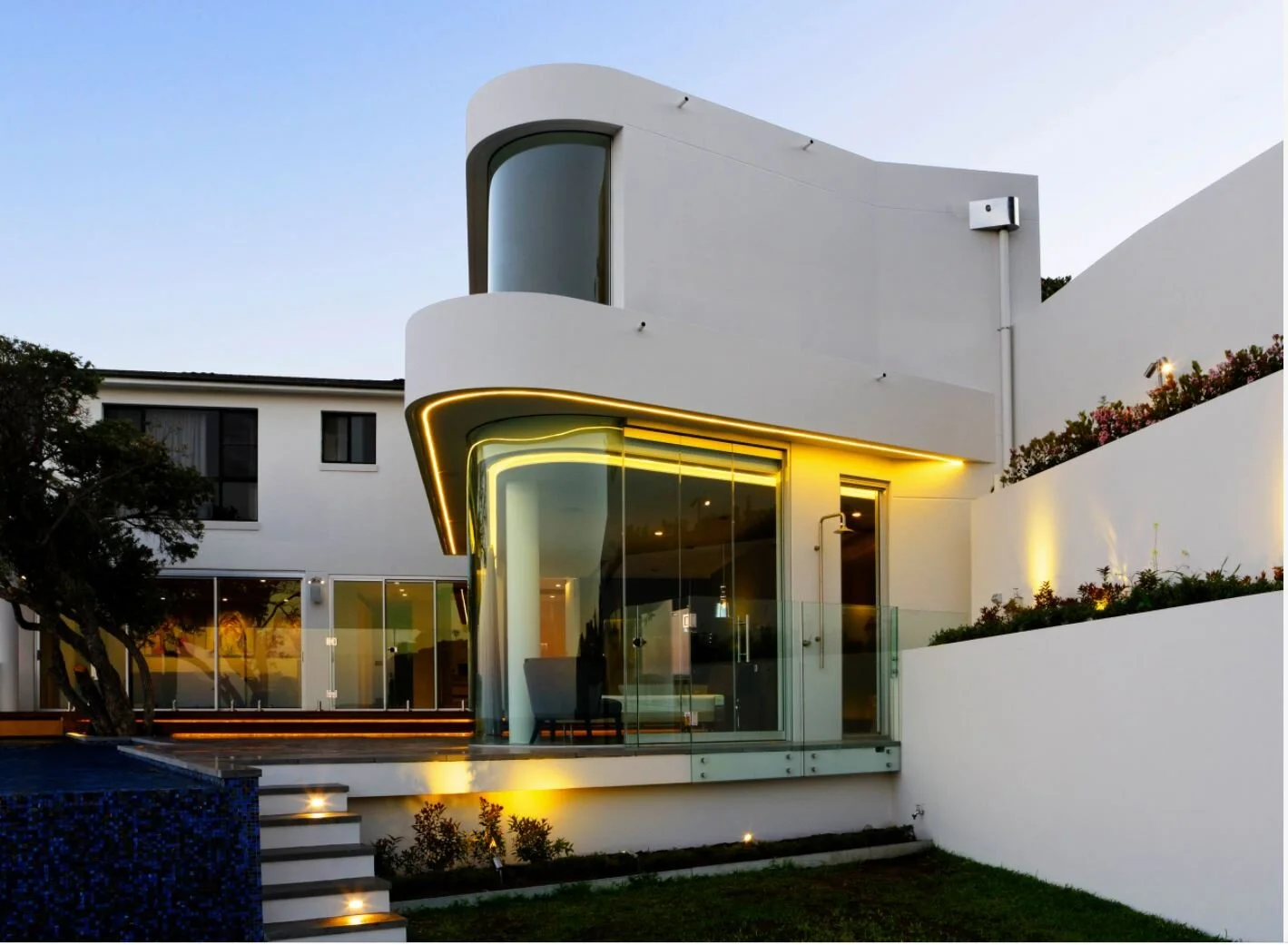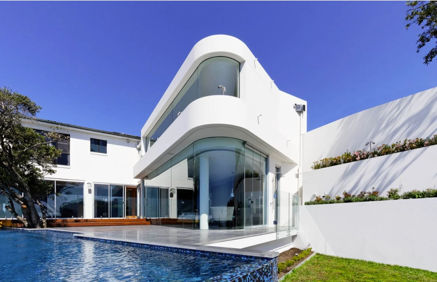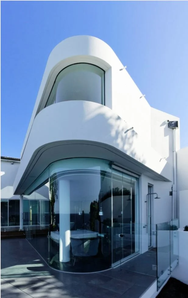 The addition uses large areas of floor to ceiling glass and curved galls corners to take advantage of the spectacular ocean views.