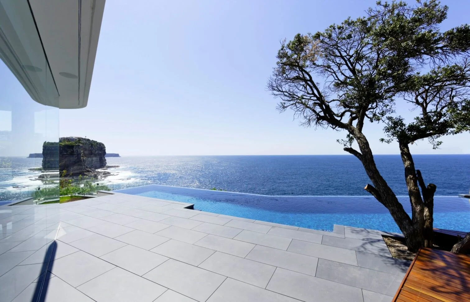 This project involved minor changes to the existing house and the addition of a main bedroom and ensuite, a double garage and a wet edge swimming pool just metres from the cliff edge.
