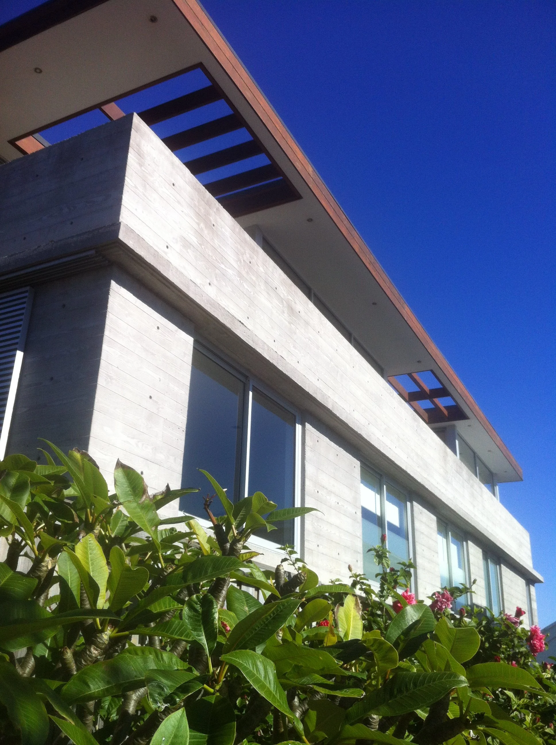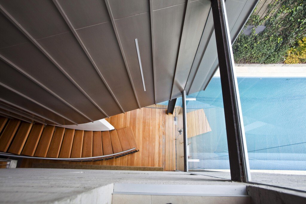 The design is a combination of townhouse and apartment with the two dwellings crossing over each other in order for both to get views of the nearby beach. The interior is painted Antique White USA and in combination with timber floors and stairs give a beachside feel.